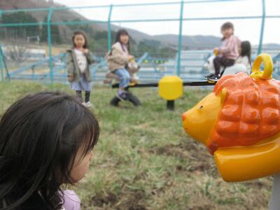 お庭にライオンがいた! 投稿: 園蝶 (04/08) カテゴリー: 今日の出来事 『今日ねーお庭にライオンがいたよ!』 進級して年中組になったAちゃんが呟いた。 『そんなはず、ないでしょ』『どんなライオンだった?』年長のお姉さん達。 『探しに行こう!』友達と会話が弾みます。 『かじられたら痛いよ』『ちゃんとジャンパー着ていこう』 園庭へ飛び出す子ども達。 こんにちは 新しく出来たスプリング遊具でした。 これから たくさん仲良くします。 Tweet -